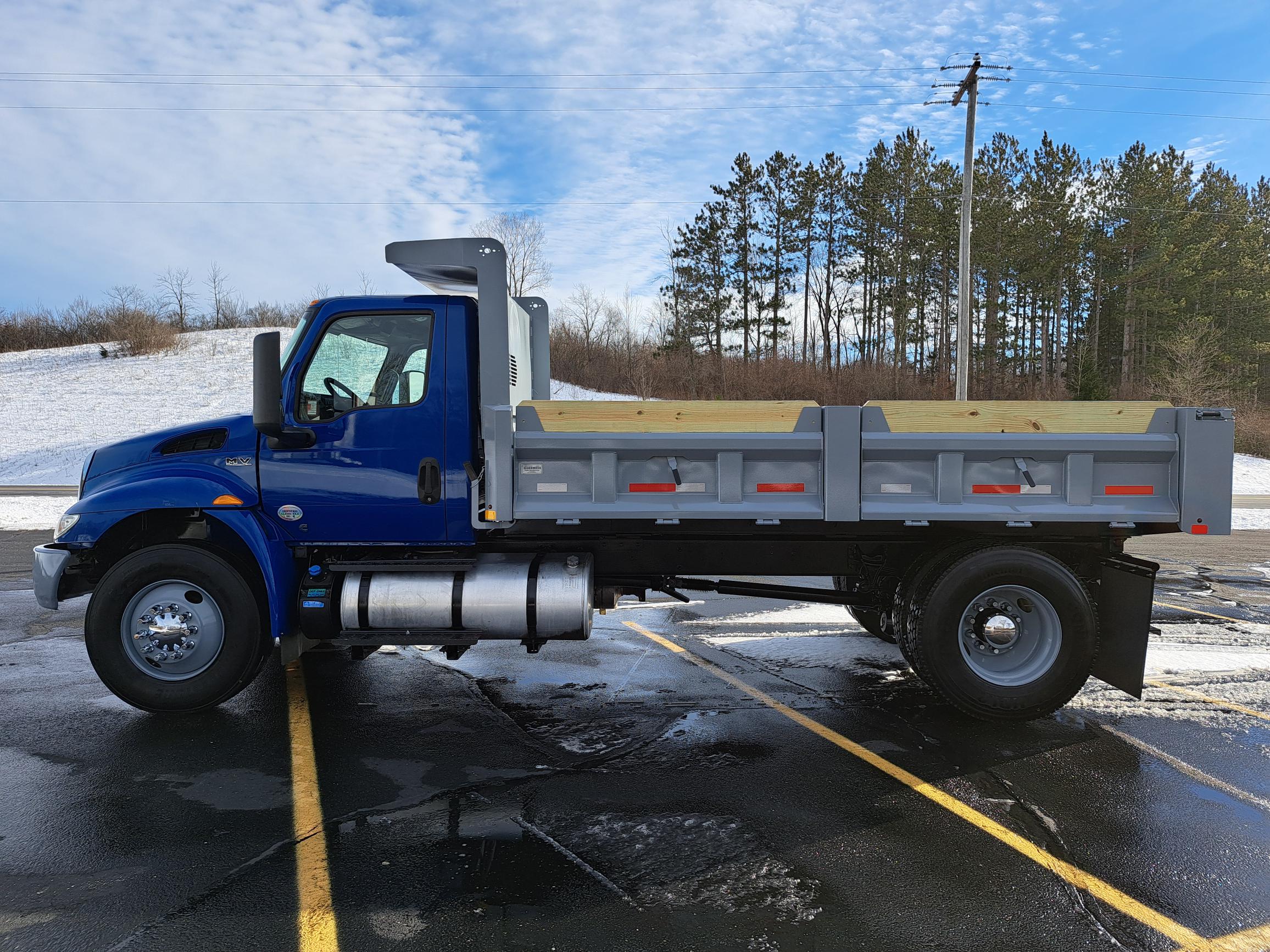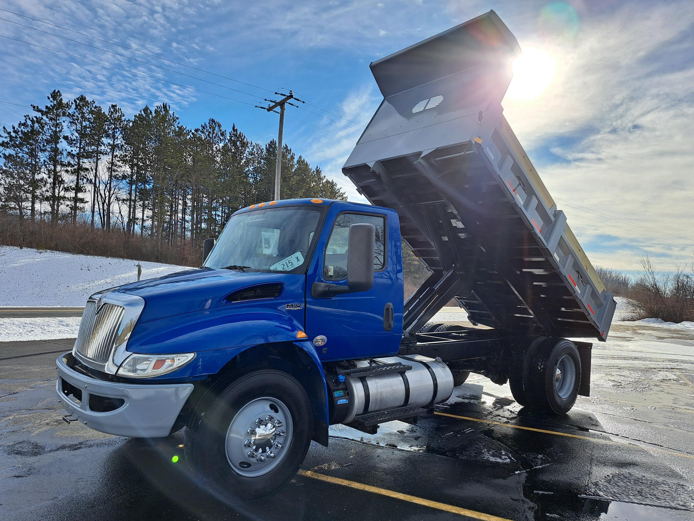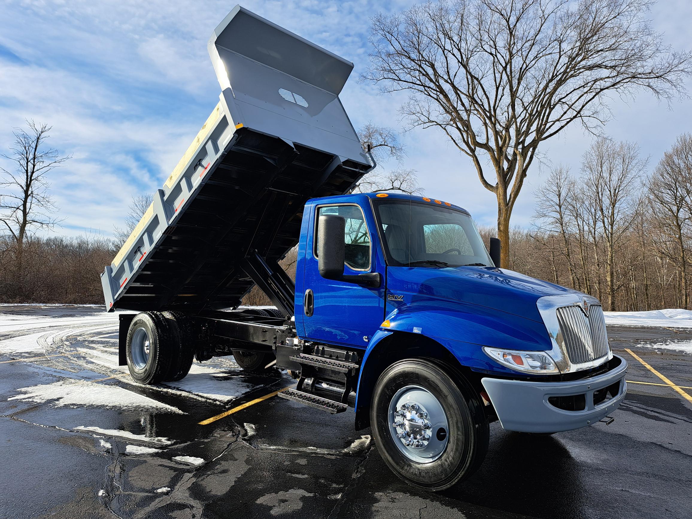2020 International MV Dump Truck – Certified Pre-Owned; Mileage: 184,244 miles; Condition: One Owner | Fully Maintained | Dealer-Leased; This truck was part of our dealer-owned, fully serviced lease fleet and has been converted with a brand-new dump body for maximum utility. Perfect for contractors, landscapers, and municipalities looking for a reliable, non-CDL dump truck.; Key Features:; ; Brand-New Dump Body with 18″ tip-down sides; PTO-Powered Hydraulic Hoist for smooth operation; 3/4 Pintle Plate with 20-Ton Hook for towing versatility; Cummins 6.7L Engine – 250 HP for dependable performance; Allison 2500RDS Automatic Transmission; 10,000 lb Front Axle | Spring Ride Suspension; 100-Gallon Fuel Tank for extended range; Steel Wheels for durability; Certified Pre-Owned for peace of mind; ; This truck is Non-CDL, making it easier for your team to operate without special licensing. Fully serviced and ready to work!; Contact us today to schedule a demo or request pricing details.; Financing options available.